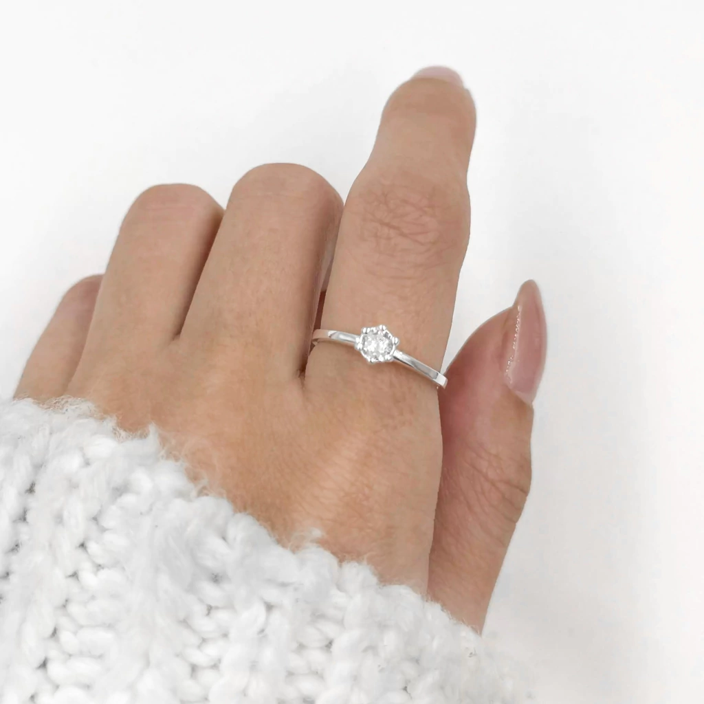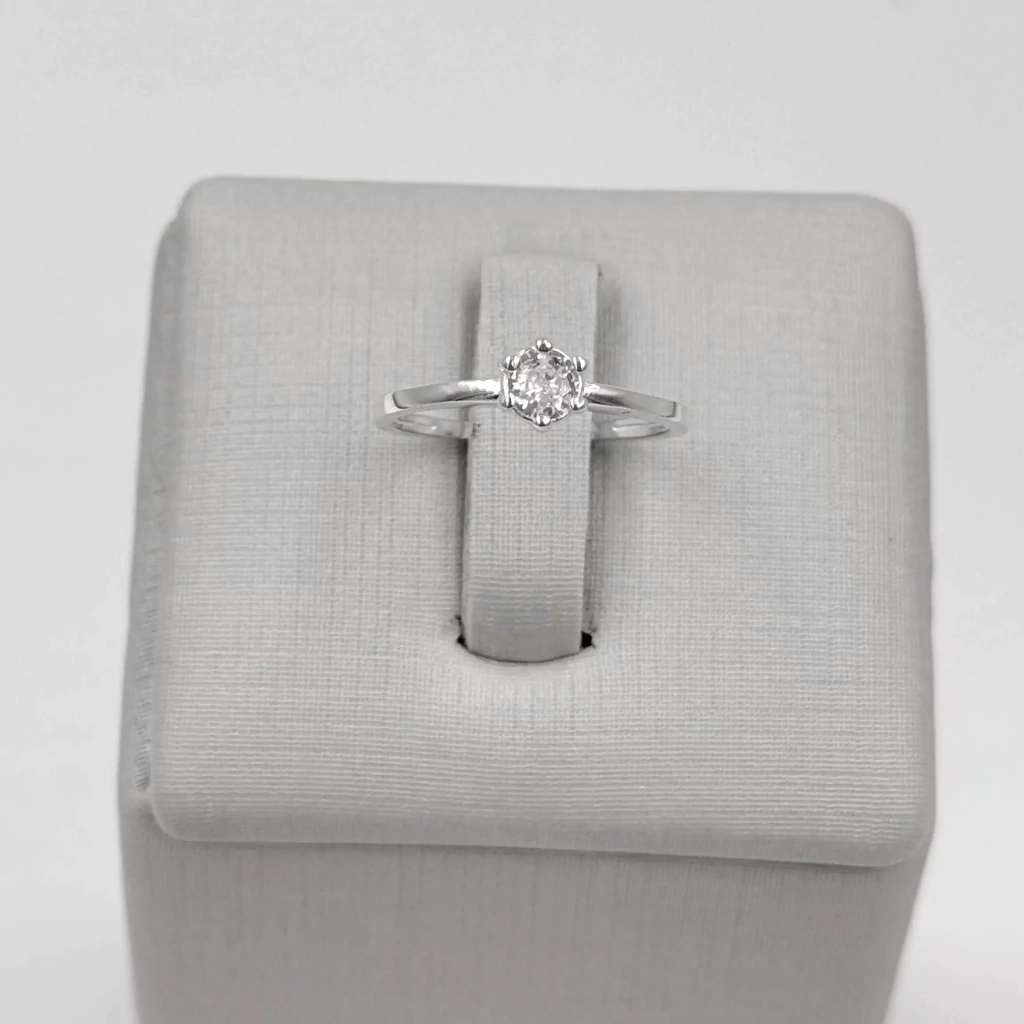 Anel feminino solitário cravejado zircônia 6mm prata 925