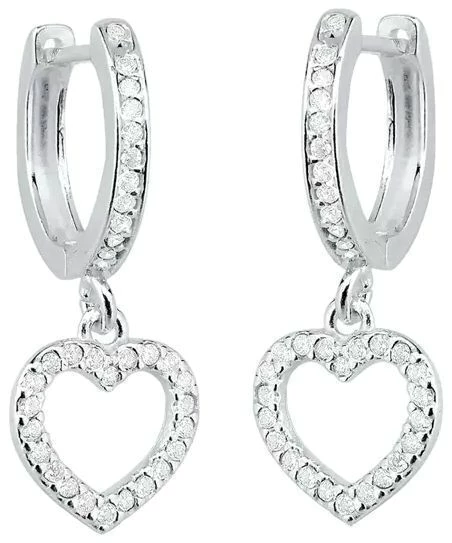 Argola feminina click cravejada pingente coração cravejado prata 925