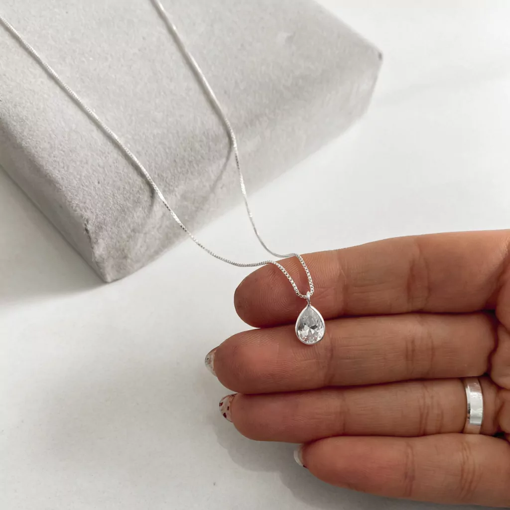 Colar Feminino Ponto de Luz Gota em Prata 925